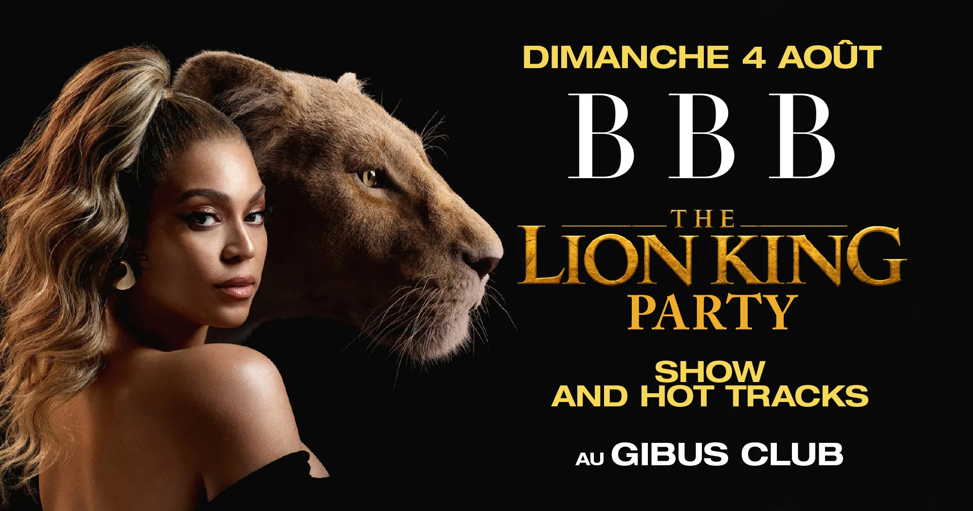 BBB THE LION KING PARTY Sunday, August 4, 2019 11:30 PM 23:30 Monday, August 5, 2019 6:00 AM 06:00 Gibus Club 18 Rue du Faubourg du Temple 75011 Paris France (map) Google Calendar ICS DIMANCHE 4 AOÛTBBB THE LION KING PARTYSHOW AND HOT TRACKSAU GIBUS CLUB 18 RUE DU FAUBOURG DU TEMPLE 75011 PARIS Pass gratuits Réserver une table
