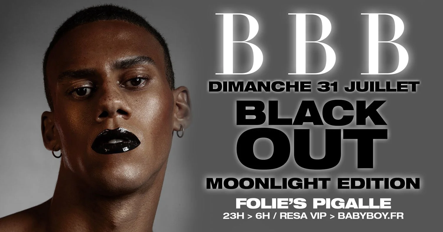 BBB BLACK OUT MOONLIGHT EDITION Sunday, July 31, 2022 11:30 PM 23:30 Monday, August 1, 2022 6:00 AM 06:00 FOLIE'S PIGALLE 11 Place Jean Baptiste Pigalle 75009 Paris France (map) Google Calendar ICS DIMANCHE 31 JUILLETBBB BLACK OUTMOONLIGHT EDITIONFOLIE’S PIGALLE 11 Place Jean Baptiste Pigalle, 75009 Paris PASS GRATUITS RÉSERVER UNE TABLE